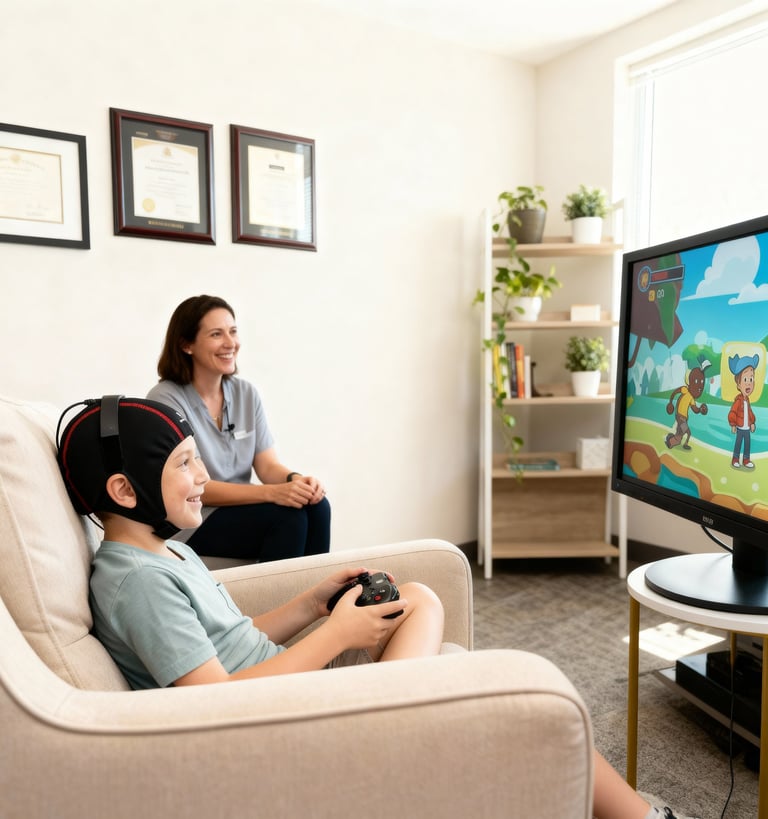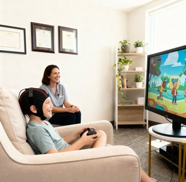 A non-invasive method where you control video games with your mind. By rewarding the brain for focus and calm in real-time, we teach self-regulation without medication. It is engaging, safe, and data-driven.